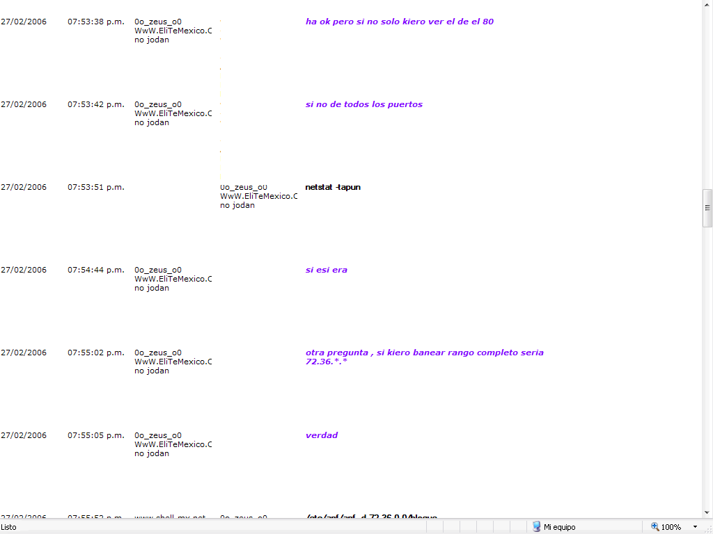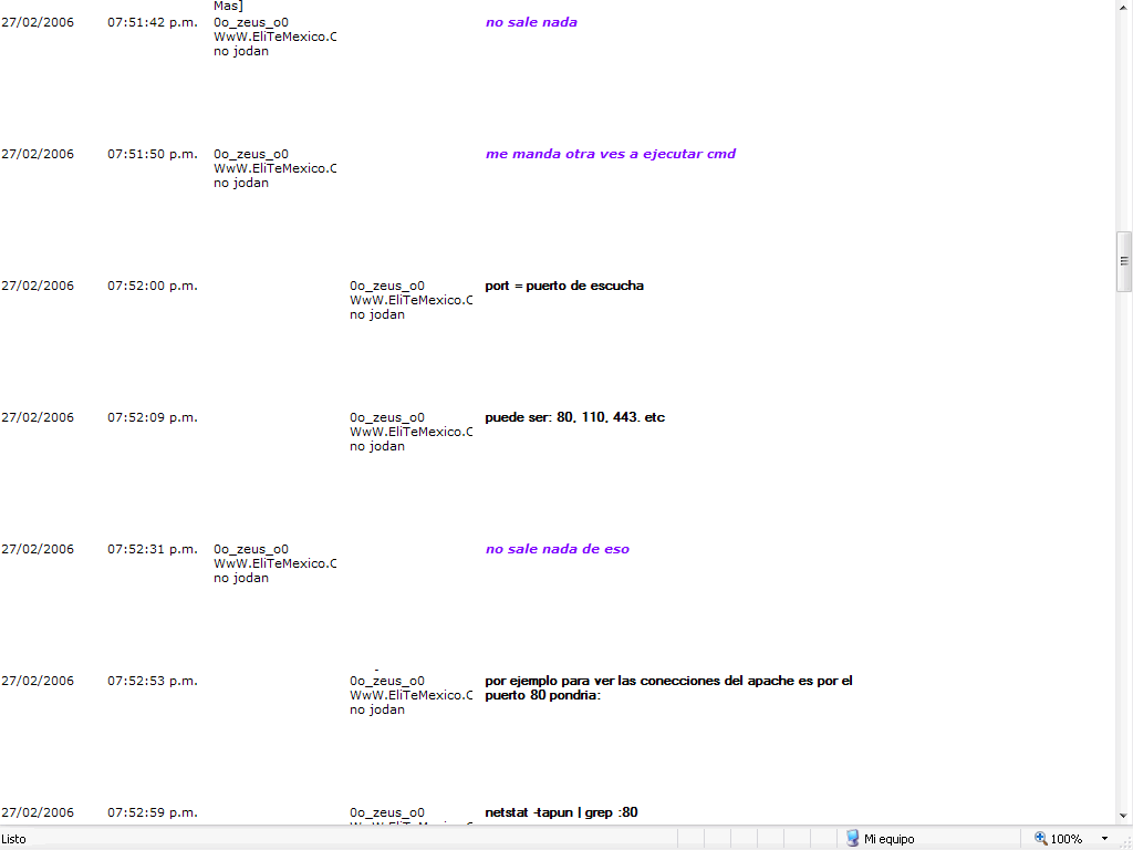 el log de zeus es de febrero del 2006 ya tiene mas de un año jejeje que mente perversa guarda logs desde hace tanto tiempo jejeje no importa al menos nos deja saber la verdad de algunos super hackers