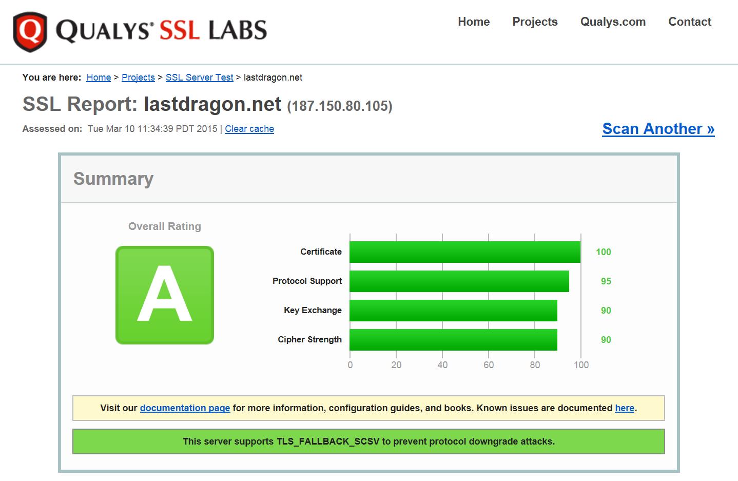 La calificación podría ser más alta, pero me niego a modificar valores que considero innecesarios y muy paranoicos y que finalmente terminaran siendo mala idea en la cueva del dragón como el Strict Transport Security (HSTS)