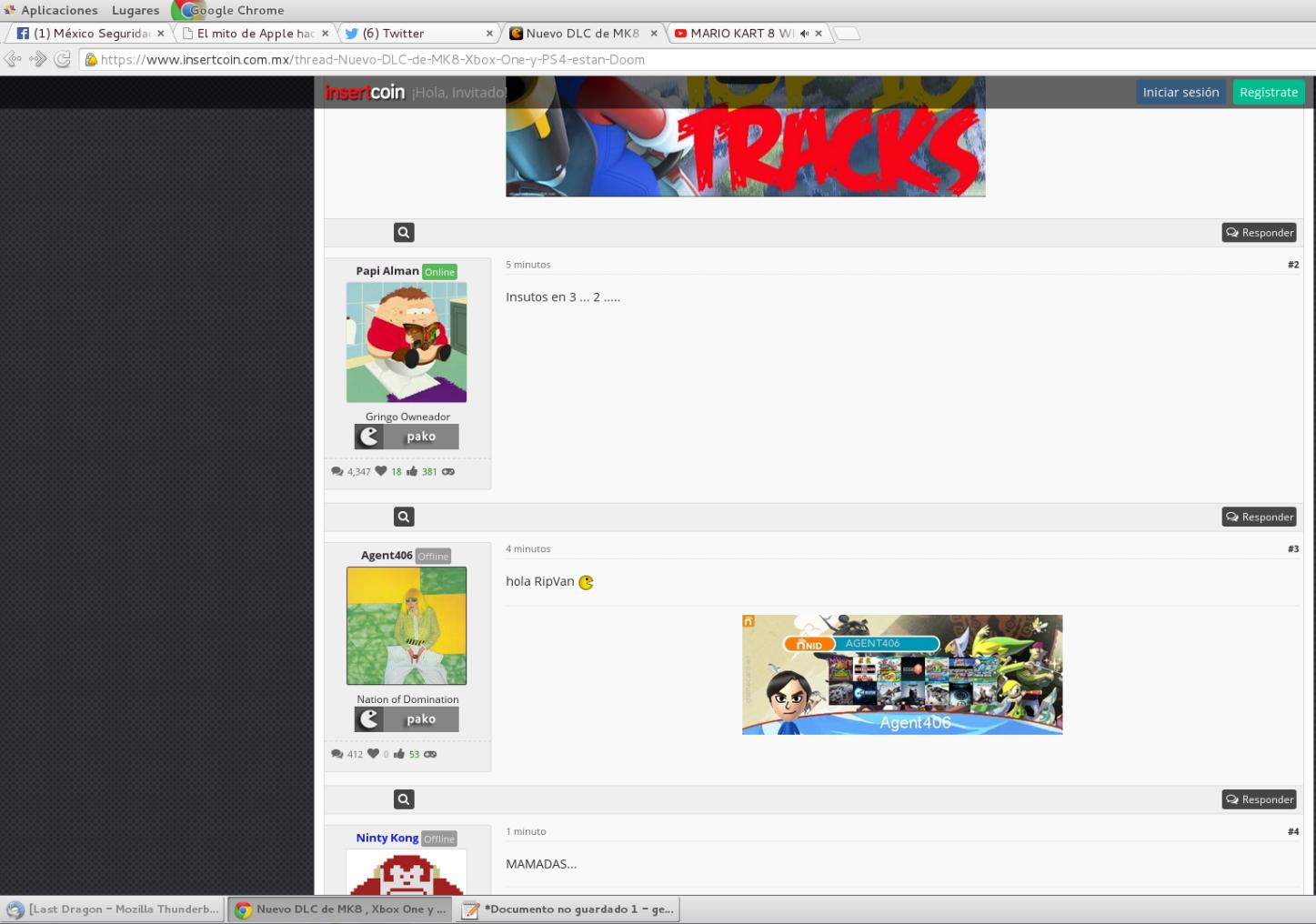 Probé diferentes cosas, algunas absurdas pero no estaba buscando cordura solo algo que detonara enojo, luego recordé el por que había iniciado todo esto, el asunto era un tema de Wii U. pensé, ya probé con lulz, ya probé con pixeles y si después de todo simplemente escribo Wii U… BANG .. Bingo… en ese momento parecía que había penetrado sus anos con un chile, un ardor incontrolable que empezaron a despotricar contra mí , contra Nintendo, en fin…