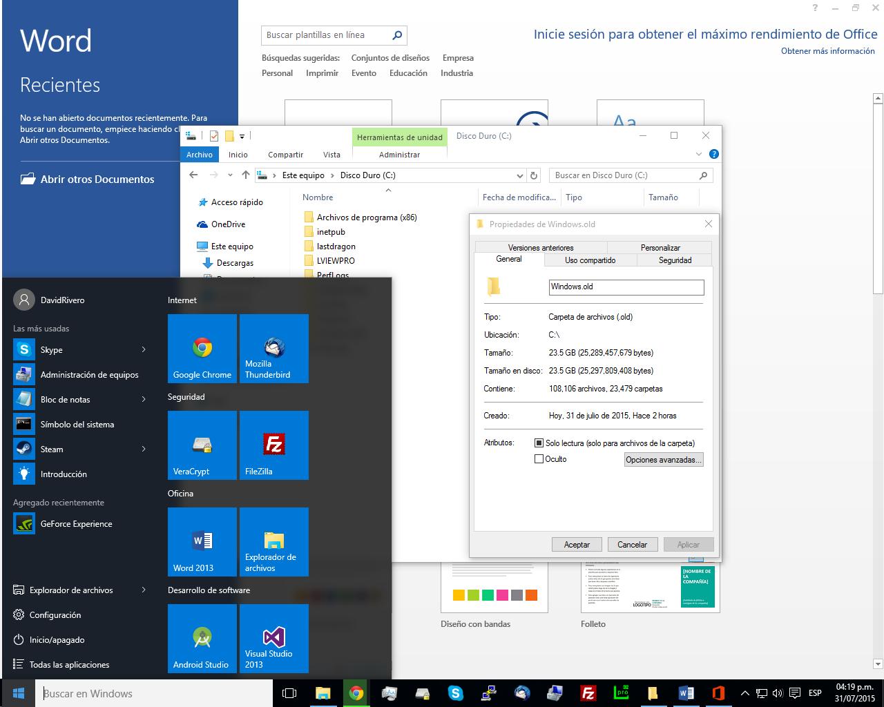 Sin embargo he decido darle la oportunidad a Windows 10, finalmente deje pasar el Windows 8.x y el Windows 7 pronto perderá soporte. Sera cosa de agarrarle amor a este hibrido extraño entre Windows 7 y 8.1