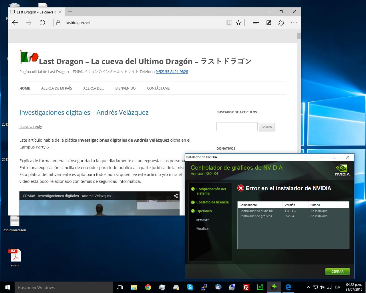 Después me di cuenta que la pantalla se veía rara, no había instalado el driver correcto para mi GPU Nvidia . Descargue el GeForce Experience que dicho sea de paso en la página WEB decía que estaba listo para los drivers de Windows 10, el GeForce Experience bajo el driver correcto pero fallo a la hora de instalar sin dar más detalles que un simple NO SE PUDO INSTALAR EL DRIVER. Fue solo hasta que decidí revisar el administrador de dispositivos que vi que si instalo el driver y solo entonces apareció un popup con el aviso de que debía reiniciar mi PC para aplicar el Driver, después de reiniciar, la pantalla y las fuentes de texto ya se veian bien, pero de nuevo no me aviso de forma simple que tenía que reiniciar la PC, si no voy por mi mismo a revisar el administrador de dispositivos habría estado intentando instalar el driver de forma frustrante porque solo se limitaba a decir, NO SE PUDO INSTALAR EL DRIVER.