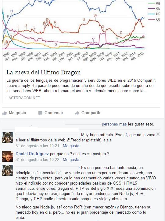 Después de que publique el artículo La guerra de los lenguajes de programación y servidores WEB en el 2015 me llego un comentario sobre alguien llamado Freddier de Platzi.