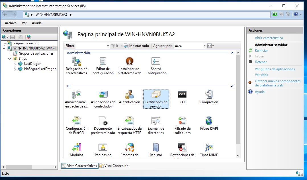 El resultado es que obtendrás un archivo PFX en este caso lastdragon.pfx, es el archivo que debes importar en los certificados de servidor en el IIS