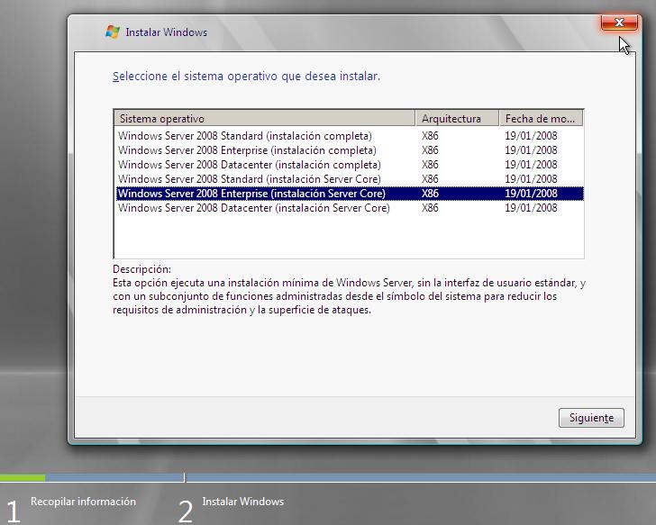 Windows 2008 Server en CORE
