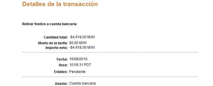 Por último, (y es una duda fuera de tema) paypal asigna un limite de transferencia de 5,000mx mensuales para cuentas no verificadas. ¿Es por esto que la transacción en la imagen es de 4900?