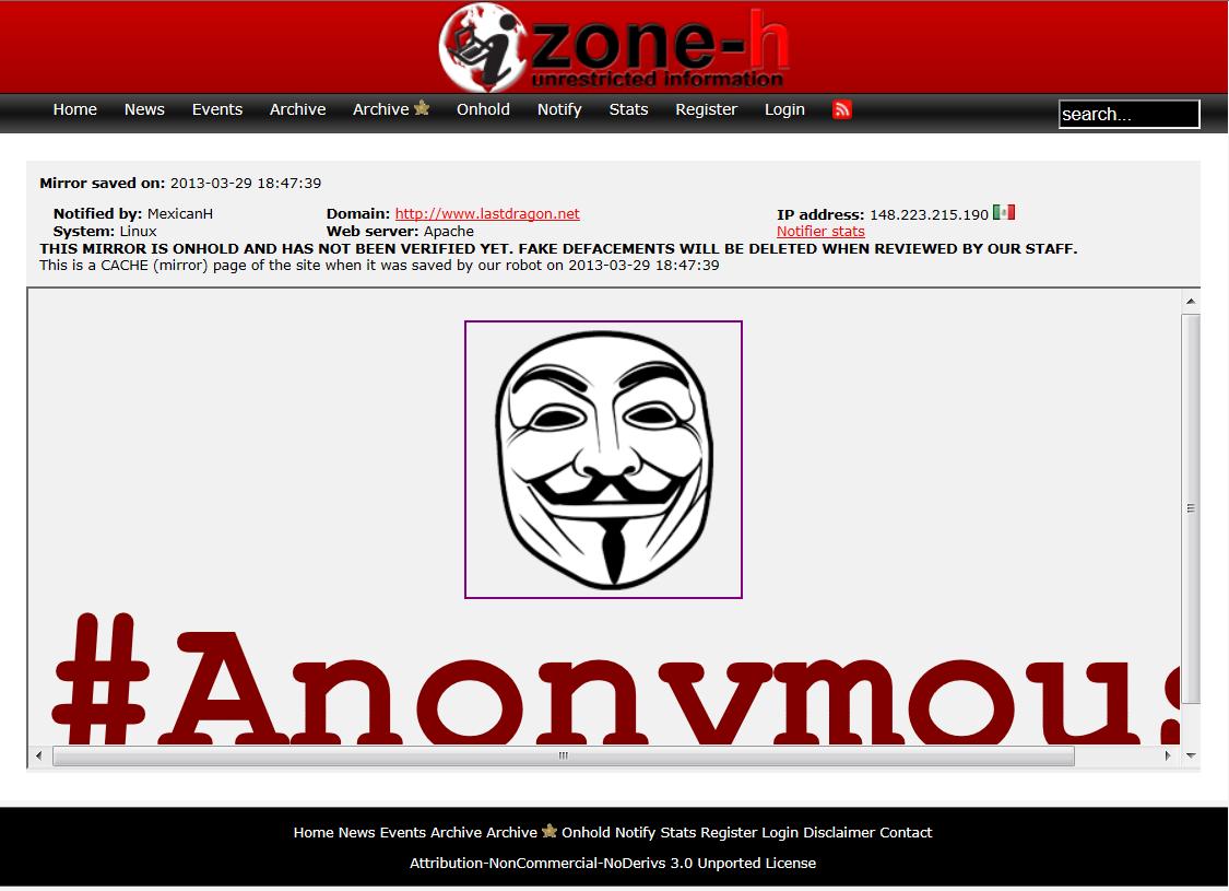 El ataque fue reportado con este URL http://zone-h.org/mirror/id/19566331