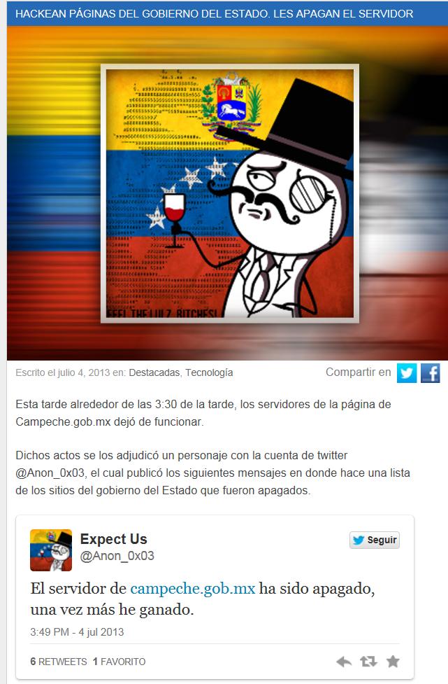 Fuente http://www.campeche.com.mx/noticias/tecnologia/hackean-paginas-del-gobierno-del-estado-les-apagan-el-servidor/76460